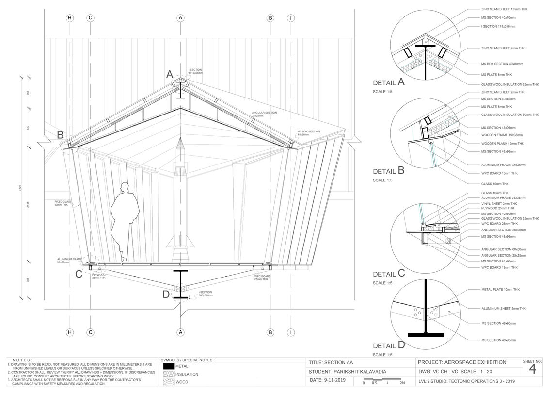 The bridge is more than just a connection between the two buildings it serves as an aerospace exhibition, displaying various space shuttles, satellites, and space models. Designed as a single truss bridge, it is cantilevered equally on both sides and rests on the load-bearing walls of the existing structures. The truss expands in the middle to create space for the exhibits, and its twisting walls give the interior a dynamic feel. When viewed from the ground, the glass reflections shift from frame to frame, adding to the visual experience.